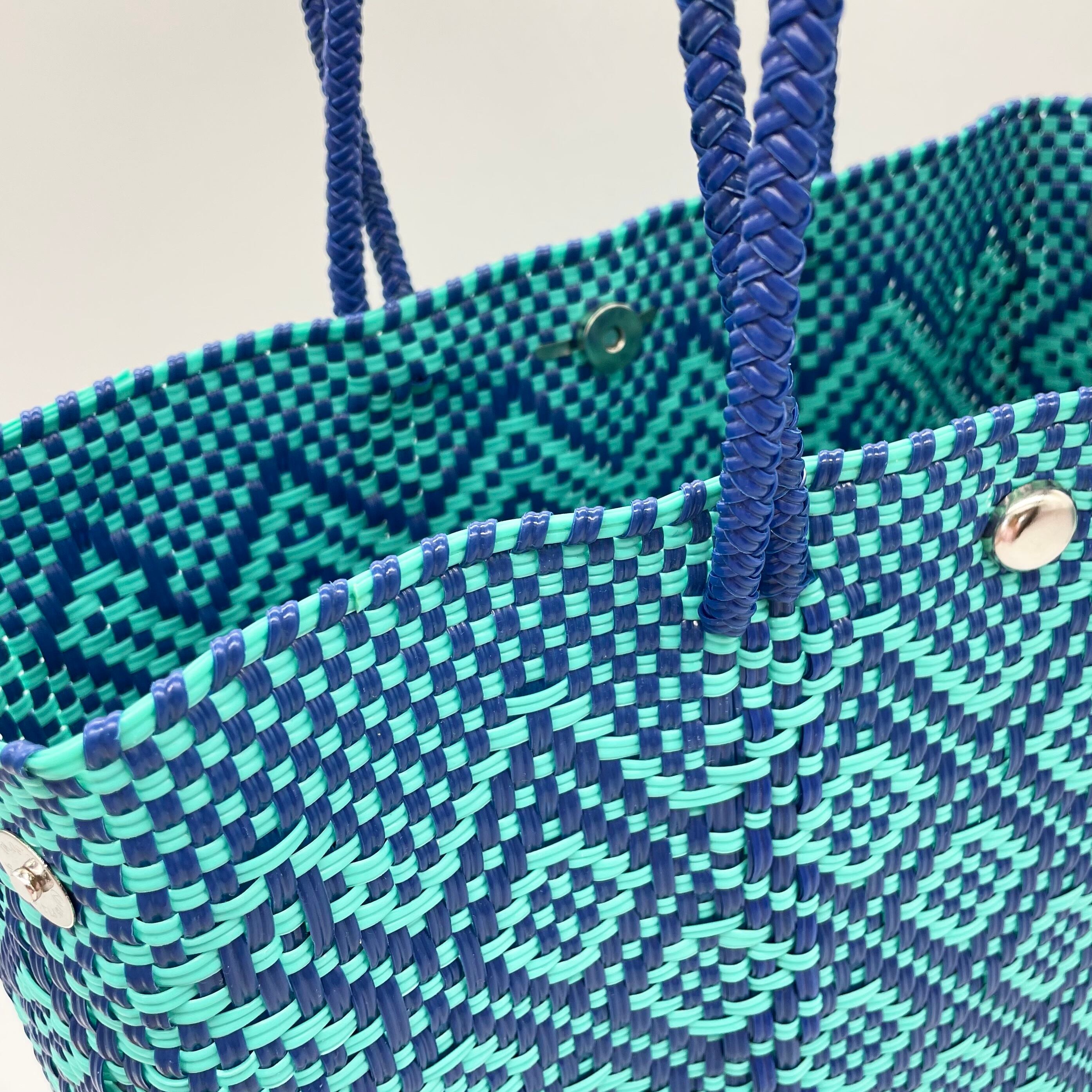 再生プラスティックで丁寧に編んで作られているので、とても頑丈で水濡れも問題ありません。