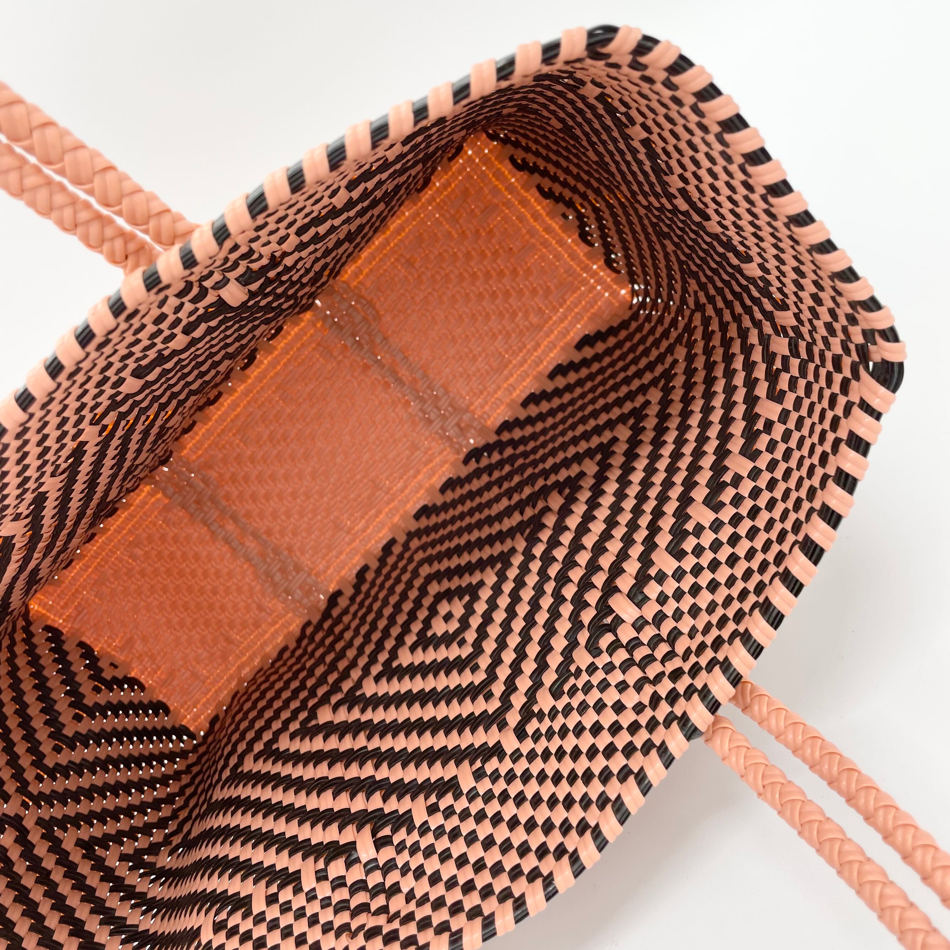 再生プラスティックで丁寧に編んで作られているので、とても頑丈で水濡れも問題ありません。